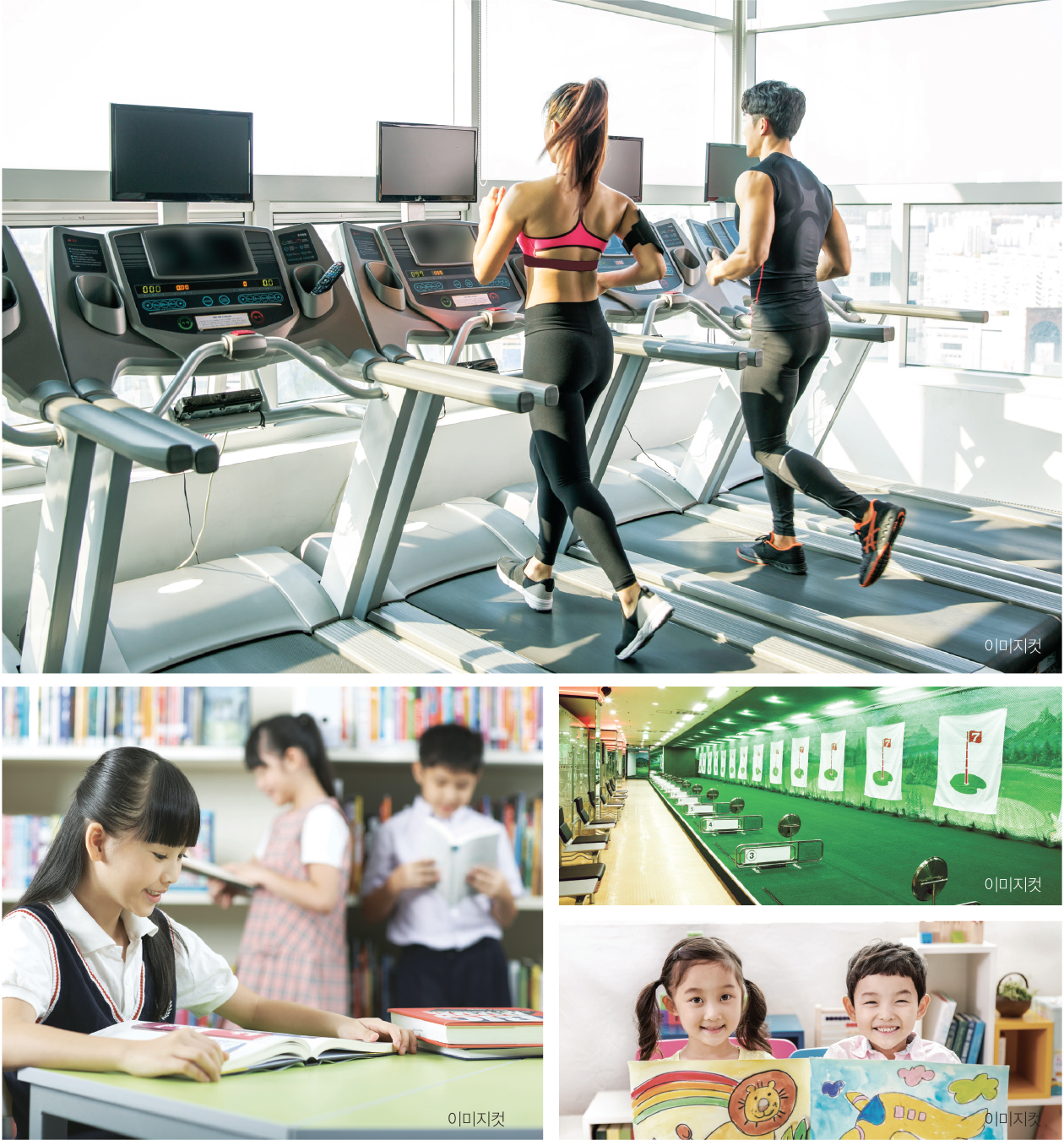 - 휘트니스 입주민들의 건강한 일상을 위해 쾌적한 실내 운동공간을 조성해드립니다